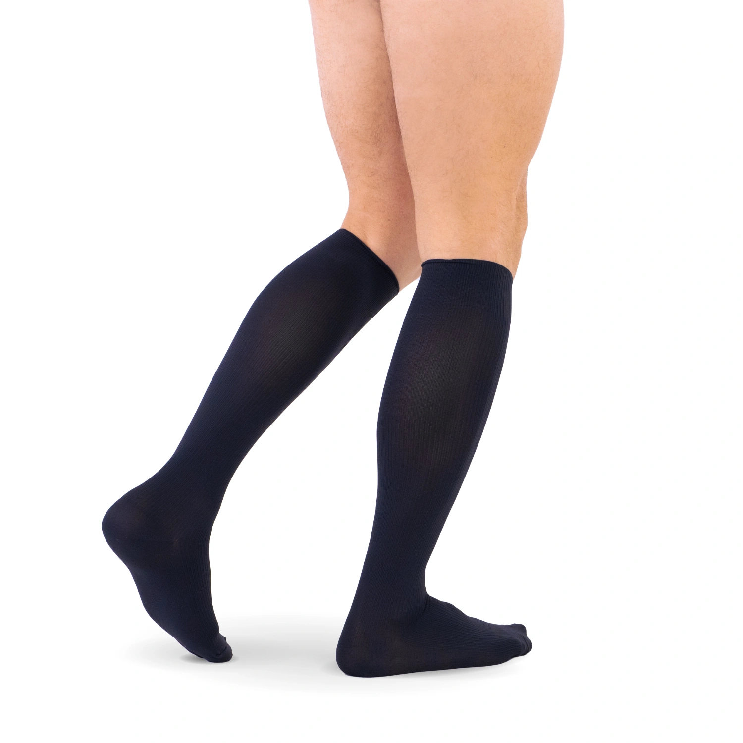 Gambaletto riposante a compressione differenziata in lycra e skin-life, maglia a costina 2/2, vero tallone diminuito, elegante finitura senza polsino, costruito in 5 taglie. Grazie alla microfibra Skin-life, la temperatura del piede resta costante mantenendo la calza sempre morbida anche dopo molti lavaggi;