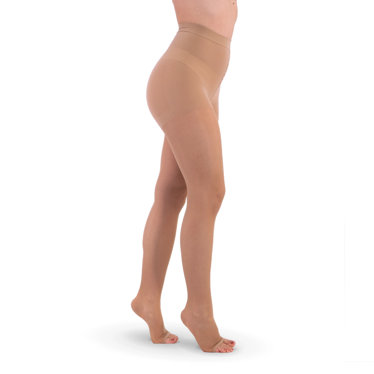 Calza riposante a compressione differenziata in lycra, doppia ricopertura, vero tallone diminuito, mutandina anatomica, con tassellino nelle taglie da 1 a 4 o tassellone per taglia 5.
