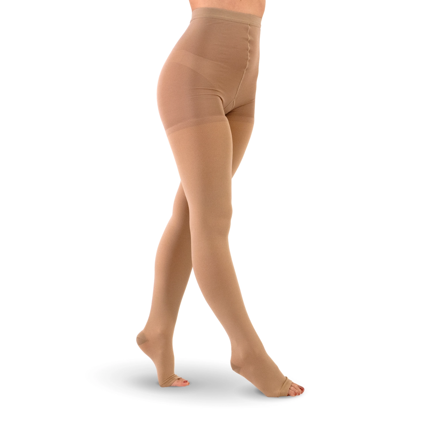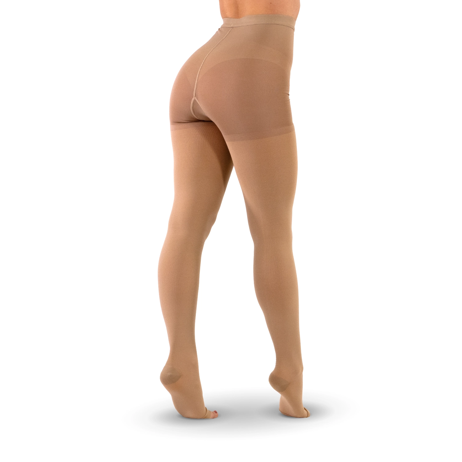 Collant medicale a compressione differenziata in lycra, prodotto con tecnologie avanzate che utilizzano filati in microfibra per dare migliore comfort e morbidezza.